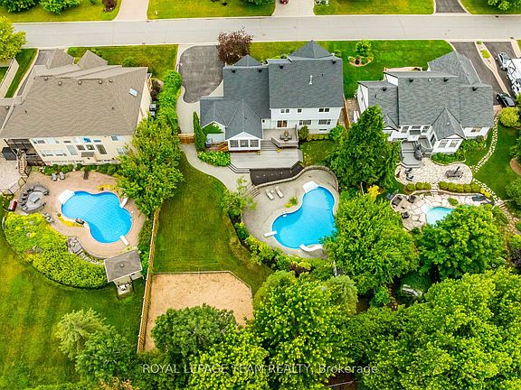 Nestled on one of Stittsville's most coveted streets, this distinguished estate home showcases timeless elegance and unmatched curb appeal. Featuring meticulously landscaped gardens, striking stone, and a rare triple-car garage, this 5-bedroom, 3-bathroom residence elevates family living. Set on a premium lot, this home boasts what is undeniably one of the most spectacular backyards in the entire neighbourhood. Thoughtfully designed for year-round enjoyment and luxurious outdoor living, this private oasis features an oversized inground saltwater pool surrounded by lush gardens and mature trees, creating a resort-like atmosphere. An expansive deck and inviting 3-season sunroom offer the perfect space for relaxing or entertaining. For added fun, enjoy your very own beach volleyball court in the summer, transformed into a magical ice rink in the winter; making this backyard truly one-of-a-kind! Inside, the home is equally impressive. The beautifully updated chefs kitchen is a dream, complete with a large island, granite countertops, stainless steel appliances, and abundant cabinetry. A butlers pantry connects to the elegant formal dining room, perfect for hosting. The main floor also features a dedicated home office, ideal for remote work. Upstairs, the luxurious primary suite offers a peaceful retreat with a cozy fireplace, a walk-in closet, and a newly renovated spa-inspired 5-piece ensuite. The second level also includes a convenient laundry room, fully renovated 4-piece bathroom and 3 additional bedrooms. The finished basement adds even more versatility, featuring a spacious bedroom, a massive recreation area, and a stylish bar, perfect for movie nights, game days, and family gatherings. Walk to Main Streets cafes, shops, restaurants, schools, library & more. A rare retreat offering elegance, space, and lifestyle in the heart of the community!