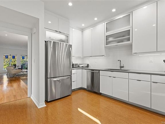 Impressive townhome in Beechwood; Briarcliff Manor's exclusive community with seasonal Hudson River views and 30 acres of pristine park like grounds designed by Frederick Olmstead. Commuters delight with a short walk to Scarborough Train Station for scenic rides to Grand Central Station. Dramatic 2 story entry foyer welcomes you to your 3 bedroom, 2.5 bath home with an inviting open floor plan, recently renovated chef's kitchen (2021), refinished hardwood floors, cozy den with fireplace, & private bluestone patio overlooking the lush great lawn which is perfect for your morning coffee or outdoor dining. Skylights and walls of windows provide ample natural light. Primary bedroom has an ensuite bathroom with soaking tub and a newly designed walk-in California Closet. Amenities include pool, tennis courts, on-site manager, formal ballroom, & library. HOA covers common landscaping & snow removal.