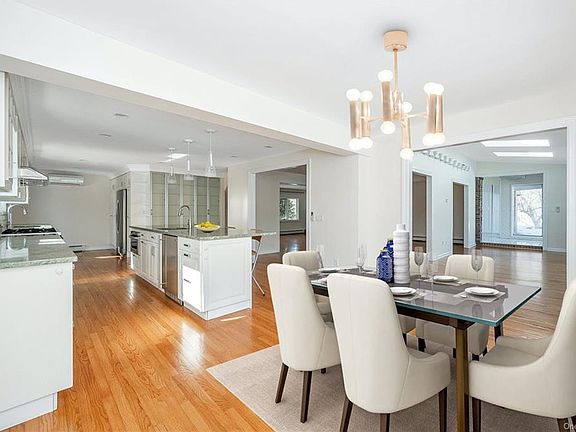Your very own playground! This bright, spacious, open home is situated at the end of a cul-de-sac with beautiful views and direct access to Crawford Park. The gourmet chef's kitchen features top of the line Italian appliances, an abundance of cabinet space, substantial island and plenty of space for dining. Throughout the living space you'll find skylights, hardwood floors, track lighting and thermo pane windows. An inviting fireplace in the living room and a bonus room which can be designed to meet your lifestyle rounds out this beautiful Rye Brook home. Accepted Offer - continue to show.