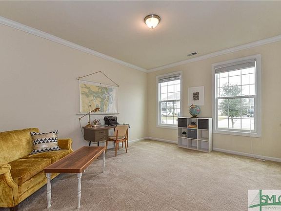 As you enter this beautiful Brookline (only floor plan like this one in the neighborhood) 3 bed/2.5 bath in the popular Gates at Savannah Quarters, the wide, light-filled entry way will draw you in. The kitchen features granite counter tops and large breakfast bar, stainless appliances including double oven and white cabinetry. The kitchen opens onto the dining area/family room filled with unique touches creating warm and inviting spaces. The MASTER ON MAIN floor has an enormous walk-in closet and an over-sized, luxurious bathroom-double vanities, water closet and separate shower and garden tub. Also downstairs is an office/formal sitting room, mud room and laundry room. Upstairs are two more bedrooms, loft and bathroom creating a comfortable gathering space for everyone. Beautiful flooring, high ceilings and recessed lighting accent the best features of this home. The gated community has a pool, clubhouse, playground, stocked lagoons and boat/rv storage. No flood ins is required.