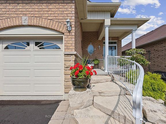 Stunning 2-bedroom bungalow showing true pride of ownership throughout. Bright and inviting, featuring hardwood floors & vaulted ceiling. The large kitchen offers ample counter & cabinet space, stainless steel appliances, spacious eat-in area with walk-out to the backyard. Two generous bedrooms including primary with a 3-piece ensuite & walk-in closet. Finished basement provides family room, office, & an extra 3-piece bath. Enjoy the outdoors on spacious deck with a covered gazebo overlooking landscaped gardens with irrigation system Beautiful curb appeal with custom stone steps & covered front porch. Convenient location with easy access to Hwy 401 for commuters. Updates include - Windows '23 (excluding basement) - Shingles '23 - Epoxy garage floor & front porch '23, Hand railing ( bloor railing) - Irrigation system front & back yard '23, Back deck Upgraded with composite & new railings '24, electric vehicles charger '24 - shed painted and gazebo refurbished '24, kitchen refaced '20
