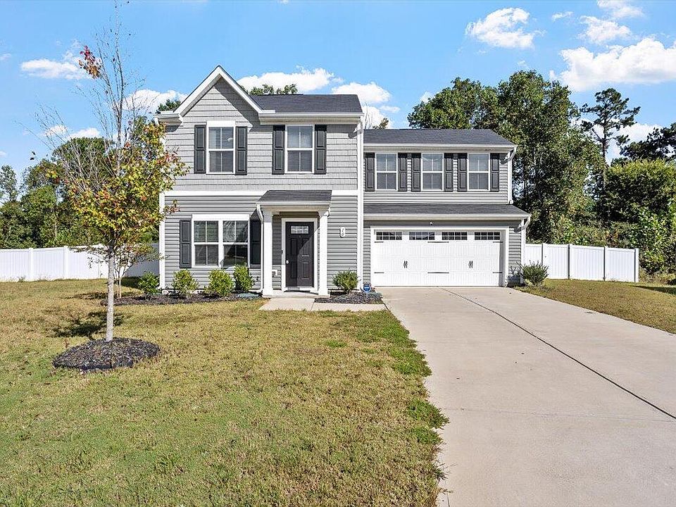 Nestled in the Quail Glen subdivision, this like-new 3-bedroom, 2.5-bath home (built in 2021) boasts 1,463 sq ft of modern living on a 0.37-acre lot with a fenced-in backyard and firepit. The open plan features LVP flooring downstairs, a sleek eat-in kitchen with butcher block island, white cabinetry, and modern black hardware. Upstairs the owner's suite includes a beautifully upgraded bathroom with a tiled glass-enclosed shower and deep blue vanity, complemented by two additional generous bedrooms, a full bath, and a convenient second-floor laundry. The 2-car garage was enhanced with built-in shelving and workspaces, adding utility beyond mere parking. With a monthly HOA that maintains the grounds and just minutes from downtown Angier, shopping, and Fuquay-Varina, this home seamlessly blends style, functionality, and location. 1% Incentive towards Buyer's Closing Costs up to $5K with the use of Preferred Lender-Nick Overcash with FCMA and Preferred Closing Attorney-McCall Law Firm.
