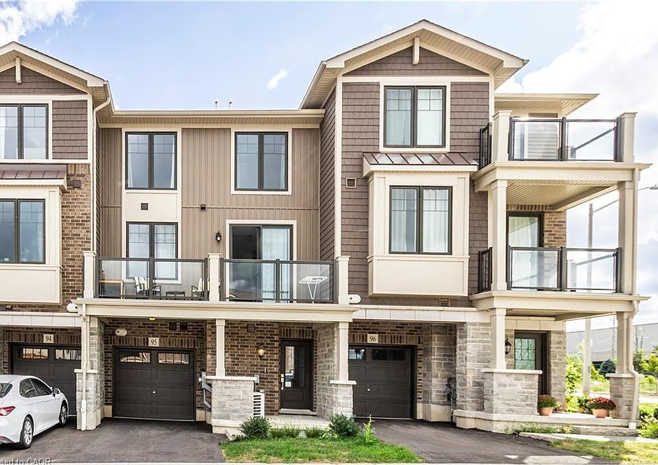 Prime Hespeler location! This stunning townhome is Branthaven-built in the high-demand 'Community' neighborhood, Just south of the 401, perfect for commuters. Welcome to 10 Birmingham Drive, Unit # 95, spacious and well-maintained living space.*** The main floor features a living/Dinning room with a walk-out Balcony, perfect for relaxation or entertaining. The kitchen is a chef's dream with high-end stainless steel appliances, quartz countertops, modern backsplash, higher upper cabinets.*** Two spacious bedrooms are located on the second floor, with plenty of windows for natural light. The 1.5 bathrooms are elegantly designed with upgraded vanities.*** Lower and Main levels feature 9-foot ceilings and upgraded carpeting in the bedrooms and staircase. The townhouse boasts a modern exterior design, enhancing its curb appeal.*** This vibrant community is walking distance to big box stores like LA Fitness, Walmart, Home Depot, Rona, Canadian Tire, and several other shopping and restaurant options. Don't miss this opportunity to own in a sought-after area!