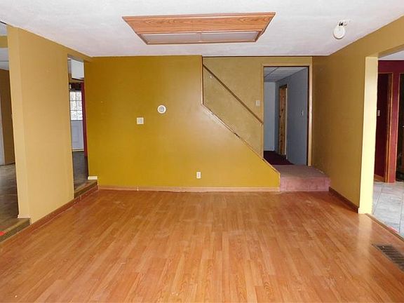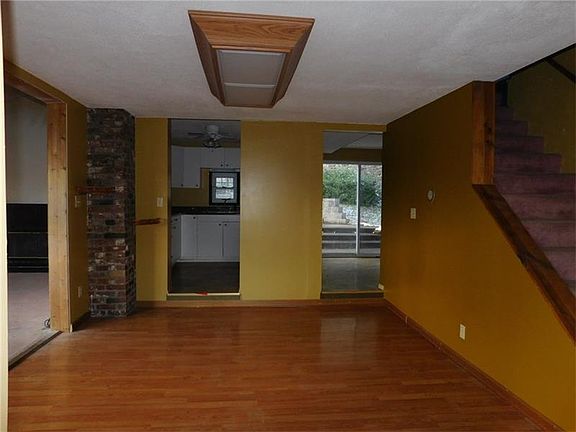 Red exterior paint welcomes you to this Unique Two story house that offers tons of opportunities! Outside, you will find large shed for extra storage, and an above ground pool that needs a little TLC. A Large wooden door leads into the main dining area, with updated flooring and neutral paint colors. The living room boasts vaulted ceilings and large fireplace, that gives the room instant character. You will find an additional bedroom room on the main level, as well as a sizeable Kitchen with dining nook. Sliding glass doors in the dining area let in tons of natural light, and lead to the back patio and pool area. Upstairs offers two spacious bedrooms and a partially renovated 4 piece bathroom, with stone styled flooring. An additional room upstairs could be the perfect rec room, office or den. Only a little TLC is needed to bring this house to its full potential.