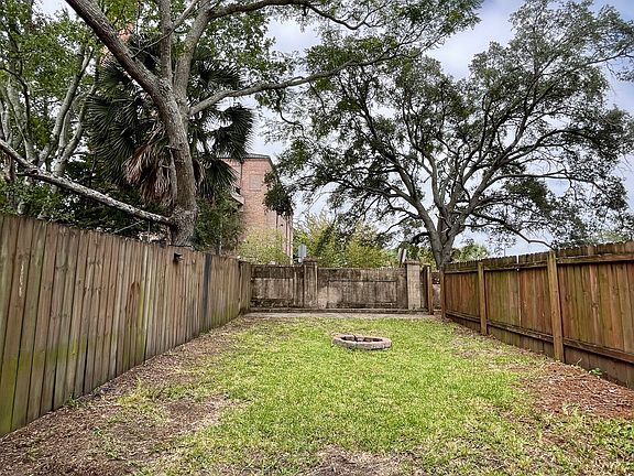 Fully fenced-in private back yard with views of large live oak and Ravenel Bridge.