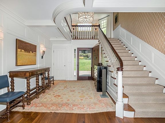 OakLedge is a seaside masterpiece with shingle style craftsmanship & elaborate architecture that was replicated in a 2009 rebuild with modern technology for greater comfort and today's lifestyle. The entire first floor & most bathrooms have radiant heat from a geothermal hydro air system that also cools & heats all the other rooms. Sellers strived to minimize their environmental footprint and seamlessly integrated the updates into this timeless home. Nooks and crannies abound with custom millwork and quality details throughout. Designed with entertaining in mind, the floor plan is graceful and functional with the original Music Room now used as a Great Room with dining and sitting areas around the original fireplace. The elegant 2 story entry foyer and grand staircase enhance the "living hall" which draws your attention to the curved panel archway that frames the water view ahead. Perched on the edge of the ocean with a private beach, heated pool & sport court-This property has it all!