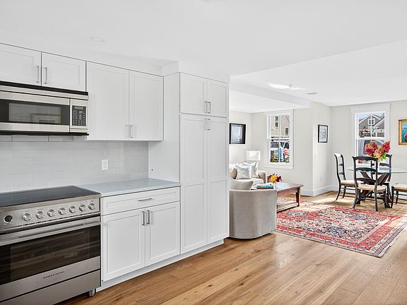 Rooted in Provincetown's history yet newly reimagined, this townhouse residence is part of a new four-unit association created from a late 19th-century Bradford Street landmark. Unit 2 offers 772+/- sq. ft. across two thoughtfully designed levels, blending period charm with modern convenience. The main floor is anchored by a light-filled alcove wrapped in windows, an inviting spot that flows into the living area and kitchen. Here, quartz counters, custom cabinetry, Fisher & Paykel appliances, and a subway tile backsplash create a polished setting, complemented by a half bath. Sawyer Mason wide-plank floors extend throughout, adding warmth and continuity. The sleeping level features high ceilings, a bedroom suite with a custom tiled walk-in shower, double vanity, and arched mirrors, along with full-size LG laundry. Exclusive outdoor space, one-car parking, weekly rentals, and pets for owners permitted. Buyer to assume annual betterment.