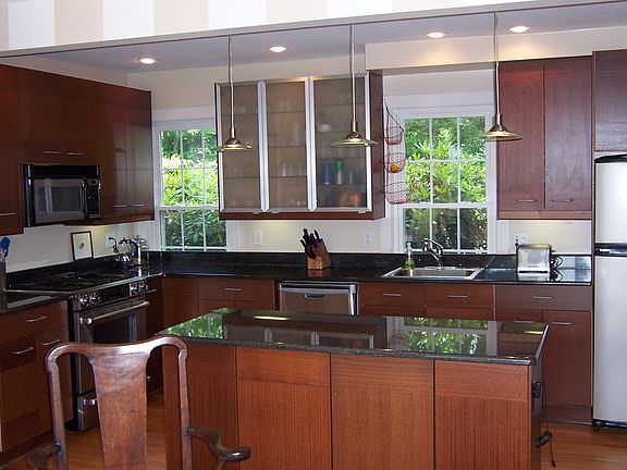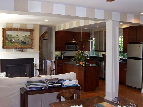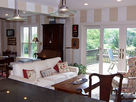 This very charming 1863 house had a total renovation completed in 2006 including all interior walls, ceilings, staircase, insulation, heating chimney rebuilt etc. Please ask for details. There is a generous deck off the living room offering water views of the cove which delivers cool summer breezes. Kitchen just had another face lift this winter. There is a one car garage detached from the house and stone walls surrounding the property. A must see for those looking for easy living with a short walk to Mystic village and restaurants.