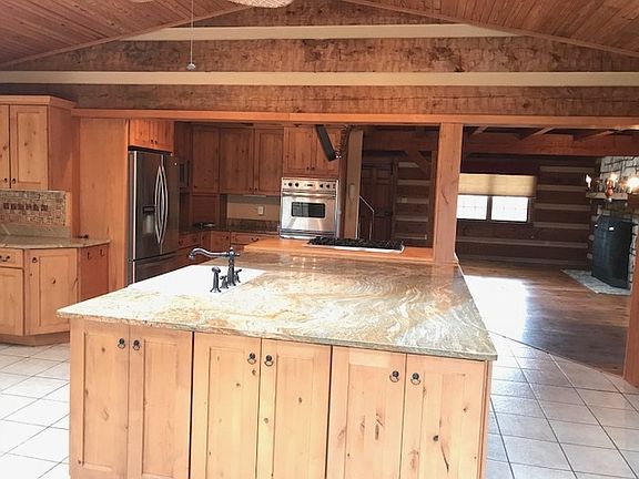 Beautiful log/stone home with awesome lake!!! This home features hand carved beams and some of the best stone work I have ever seen. Three beautiful fireplaces are located throughout the house. There are too many upgrades to list on this property from the fully stocked lake with docks to the indoor wave pool. Additional acreage available.