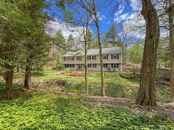 Proudly presenting this stylishly updated, meticulously maintained, magnificently landscaped 4/5 bedroom home in a coveted Tubwreck Estates! A quiet refuge minutes from major routes/trains, the 2+ acre property is a welcome escape where the sounds of nature provide sanctuary. Surrounded by woods, a bubbling brook, stone walls, lush lawn and seasonal gardens, the brick patio and covered porch offer privacy and beauty in a neighborhood setting. Inside, the maple/granite kitchen is designed w/a peninsula & wine bar open to a lovely dining room and expansive fireplaced living room featuring hardwood floors, french doors & sun-filled bay windows. Generously-sized bedrooms w/ample closet space, 2 remodeled bathrooms & laundry complete this level, incl an en-suite master w/tile shower & 2 closets. The main entrance leads to a fireplaced family room, office (former 5th bedroom), full bath & mudroom, an ideal in-law/guest suite. New septic, elec panel, windows & more. #1-ranked school in MA!