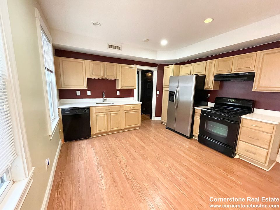 Eat in kitchenLaundry in buildingHardwood floorsBay windows