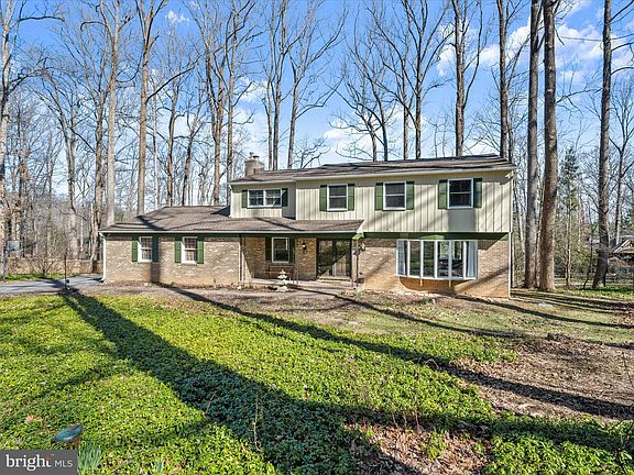 Located in Greenspring Valley’s sought-after Velvet Ridge neighborhood, this five bedroom home with two full and one half bathrooms offers over 4,500 square feet of living space across three levels. Nestled on a wooded 0.83-acre lot, it provides a peaceful setting surrounded by mature trees. A covered front porch leads to dual-entry doors opening into a two-story foyer with a curved staircase and hardwood floors that extend through most of the main and upper levels. Sunlight fills the front living room through a large bow window, while the dining room features a shiplap accent wall, creating a stylish space for gatherings. The well-appointed kitchen has granite countertops, a tile backsplash, lighted soft-close cabinetry, renewable cork flooring, and a center island. Stainless steel appliances include an electric cooktop with a rising downdraft vent and double wall ovens. Just off the kitchen, an enclosed porch sunroom provides a relaxing space for lounging or dining, with access to the deck and views of the surrounding woods. The spacious family room impresses with a brick wood-burning fireplace, crown molding, built-in display shelves, and a walk-in closet for extra storage. Nearby, the laundry room has built-in cubbies for organization, access to the garage, and a half bathroom. A main level bedroom with an adjacent walk-in closet adds flexibility to the floor plan and could also serve as an office or exercise room. Ascend the curved staircase, where hardwood floors continue. The primary bedroom boasts a private ensuite bathroom with a dual-sink vanity, a walk-in shower, and a custom closet organizing system. Three additional bedrooms share a well-equipped bathroom with a walk-in shower, soaking tub, renewable cork flooring, and a water heater for the vanity sink. Downstairs, the expansive lower level offers a recreation room with space for everyone’s activities, plus a versatile bonus room and a utility room with ample storage. Enjoying the natural surroundings outside with a deck, patio and backyard. A two-car garage provides more storage space and convenience. Additional features include dimmable lighting and freshly painted neutral tones throughout. Recent improvements within the past five years include a new water heater, air conditioning system, refrigerator, septic system, and an updated furnace. There is also a voluntary neighborhood association.