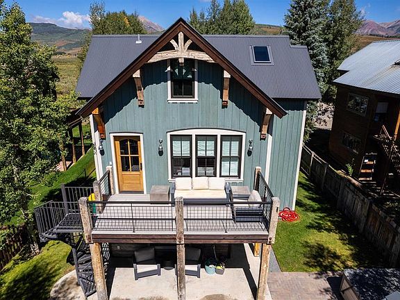 Perhaps the prettiest house in the town of Crested Butte, this 5 bedroom, oversized residence reflects that beauty inside and out. Built in 2018 by renowned local builder, Jimmy Faust, this house has incredible attention to detail, and is being offered fully furnished. Located just a few steps from Peanut Lake Road, it is on the coveted west end of the town of Crested Butte, and access to the Woods Walk, Lower Loop Trail and the vast acreage of National Forest is practically adjacent. There is no need to get into a car to recreate outside with biking, hiking and Nordic ski trails immediately accessible from your front door. This house lives large on 3 levels, affording privacy and separation as needed. The custom iron work and reclaimed wood throughout make this house a must see. Incredible mountain views prevail, especially from the second floor living area. There is a detached 1 car garage with ample space for toys, and an attic storage area above. The electric window treatments and Sonos system add to the user friendly nature of this home. The yard is professionally landscaped and boasts a hot tub and fire pit. There is additional dedicated parking on the alley. Move in ready does not get any easier than this!