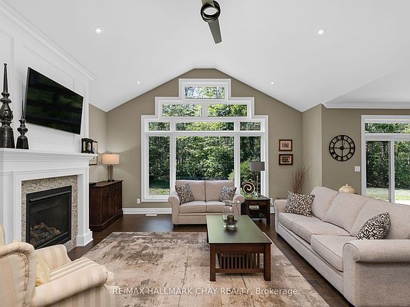 Cameron Estates has quickly become one of the most highly desirable estate communities in all of Simcoe County, Here's why - The location is truly second to none - a 5 minute drive brings you to Barrie's North end where you will find shopping, restaurants, grocery and all daily amenities, yet when you are in the neighbourhood you feel complete tranquility and isolation. That's because there are no through streets in this community and it is entirely surrounded by the best outdoor recreational amenities the area has to offer. A Club Link golf course (Vespra Hills) boarders one end of the neighbourhood and Snow Valley Ski Resort the other. You're also surrounded by forest which provides incredible hiking, biking, and walking opportunities and you have fantastic local business like Barrie Hill Farms just a few moments away. If you aren't sold on the location just yet the home will certainly seal the deal. This custom built bungalow sits on one of the best lots in the neighbourhood with no rear neighbours providing 4 seasons of privacy. Featuring well over 4000 sq ft of beautifully finished and impeccably maintained living space this home has so many features to love including the spacious floor plan with 3 bedrooms + the all important home office. The open concept design flows perfectly from the gorgeous kitchen with pantry and large breakfast island, into the dining space, and over into the grand family room with 13 foot vaulted ceilings. All 3 spaces overlook the pristine and private rear yard making indoor/outdoor entertaining seamless. Rounding out the main floor is an oversized mudroom/laundry combination and a stunning 3 season covered porch directly adjacent the kitchen. The finished lower level offers a ton of additional space whether it be rec room, home gym, flex space, additional bedroom, or ample storage. Separate entry from the garage into the lower level allows for the flexibility of an in-law suite. All of this sits on a landscaped half acre lot.