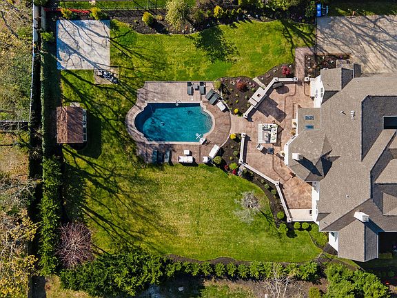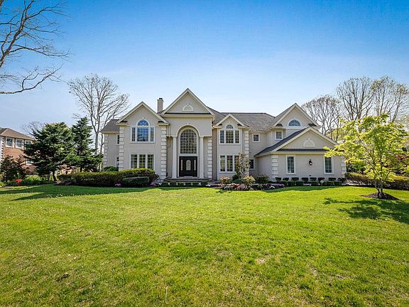 Welcome to this exceptional custom-built home by Georgetti Construction, boasting nearly 4,800 square feet of living space, situated in a perfect community in one of the best school districts in the state yet only minutes to the beaches. This meticulously designed residence features potential for five bedrooms, three and a half baths, and a wealth of upgrades throughout. Step inside to discover a luxurious floorplan, incorporating the gorgeous custom curved staircase flanked by formal living and dining rooms adorned with exquisite trim work, crown moldings, and refinished hardwood flooring. The home boasts large casement windows that add to the security and visual appeal of the home, providing maximum ventilation and natural light to every room. The chef's kitchen is a culinary delight, showcasing imported granite countertops from Italy, marble flooring and a Sub-Zero refrigerator with custom paneling, walk-in pantry and an additional min fridge beverage cooler. The kitchen island adds utility to the well-planned kitchen, providing additional workspace and storage. Crank-style windows open to allow for ample sunshine and breeze as you peek out over the beautiful backyard. Adjacent to the kitchen, an eat in kitchen area provides fabulous pool views. The step-down family room offers impressive ambiance and grandeur with cathedral ceilings and a gas fireplace and wall of windows and sliders that lead to the patio and pool area. On the main floor, there is also a separate den with access to the outside resort-style backyard setting. The first floor also has a private office which could also be converted into a that potential 5th bedroom if so desired. On the open stairwell second floor, retreat to the five-star master suite, featuring a two-sided fireplace, offering ambiance to the bedroom as well as to the spa-like adjacent master bath ensuite complete with custom free-standing tub and impressive shower system. The master suite is further enhanced with a dressing area/ or personal office as well as a fabulous custom-designed cherry walk- in closet system. The sunny and open second floor of the home features three additional bedrooms and two additional fully customized bathrooms. One of the bedrooms boasts a custom-built bunk bed system complete with its own slide, perfect for creating a fun and imaginative space for children. There is a private back staircase leading to the kitchen and laundry room complete with a chair lift system. Entertain in style in the outdoor space on the Italian garden-style patio with multi-level decking or gather around the massive custom stone gas fireplace. The expansive patio has an outside serving bar, perfect for entertaining guests while enjoying the outdoor amenities. Take a dip in the heated gunite pool, which has been newly resurfaced, or enjoy a game of basketball on the court, all within the privacy of your wrought iron fenced backyard illuminated in the evening by custom outdoor lighting. The home has a brand-new roof, a new superior LED Halo air filtration system and a new tankless water heater with circulator. Upstairs has new HVAC/ new ductwork and downstairs unit is three years new. In addition to all of the updates the home has fresh meticulous landscaping and has been freshly painted throughout, adding a touch of modern elegance to its already impressive features. This home offers unparalleled luxury and comfort. Don't miss the opportunity to make this your dream home - schedule a showing today!