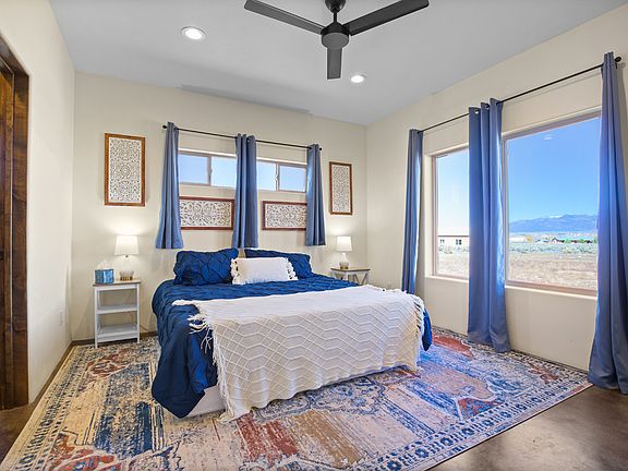Fully decorated single family house with new furniture, carport, beds and bedding, includes all utilities, dishes, TV, Pueblo style architecture outside and more modern inside, 5 miles to Taos plaza, 22 miles to Taos Valley Ski Resort, 67 miles to Sant Fe, beautiful inside and out. Great view of Wheeler Peak and sunsets. Close to grocery stores, golf, and dinning. A friendly neighborhood where folks watch out for each other. Rent for a six month lease is $2,300 per month, month to month $2,500 rent. Thanks.