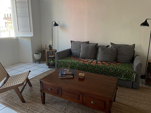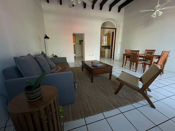 Fully furnished, beautiful apartment ready for rent in a 4-apartment condominium, located on #10 Calle de la Cruz, 2nd floor. Two balconies, one with an ocean view, one bedroom with a queen-size bed, bedding, and a large walk-in closet, 1 bathroom, and a huge living room with excellent natural lighting and ventilation. Fully equipped kitchen with microwave, coffee maker, dishes, and cookware. Two AC, 4 ceiling fans, 1 pedestal fan, refrigerator, stove, washing machine and dryer, and a 270-gallon cistern. Water, electricity (up to $100/monthly), and internet included. Come to see it!