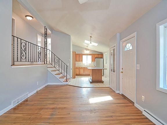 Presenting a 3-bedroom, 1-bathroom front-to-back split style home with beautiful oak hardwood flooring that extends throughout most of the space. This home exudes comfort and convenience, nestled within a wonderful neighborhood. Step into a generously laid-out floor plan that boasts a spacious kitchen equipped with newer stainless-style appliances, complemented by a sizable center island perfect for both entertaining and casual dining. The living room, accentuated by a vaulted ceiling, graces the first level with its welcoming ambiance. The upper-level features three bedrooms and a full bath. The lower level, tastefully finished with new flooring, offers additional living space, catering to your storage and potential extra half bath needs. From the lower level, step into an expansive garage, providing ample room for work and storage. Great lot, offering plenty of privacy! Here's an opportunity to invest in sweat equity while enjoying the fruits of an exceptional floor plan!