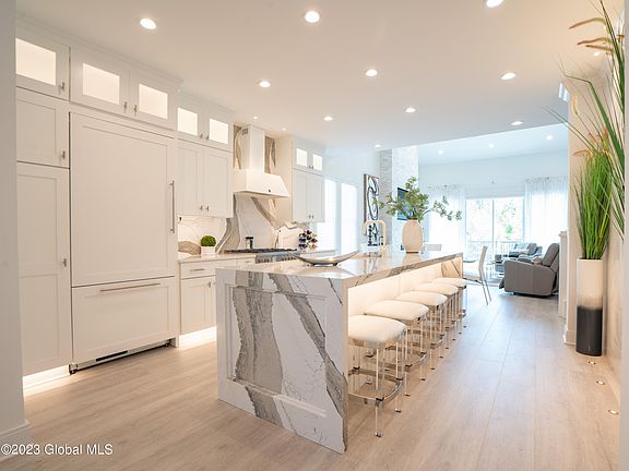Stunning townhome professionally designed by Marini's own award winning interior designer Monika. This home has over 275k in upgrades alone(base price for this model is 705k) Exquisitely designed chef kitchen w/ high end BERTAZZONI appliances, quarts counter & quartz backsplash along with 3D tiled featured wall. Wood flooring, floor to ceiling stone fireplace, custom window treatments, imported custom tiled bathrooms, spacious second floor loft overlooking living room, outdoor patio, built in gas grill, gas fire pit, overlooking forever wild. Full professionally installed home security. Basement is sheet rocked and roughed in for 1/2 bath. This stunning townhouse is a MUST SEE !