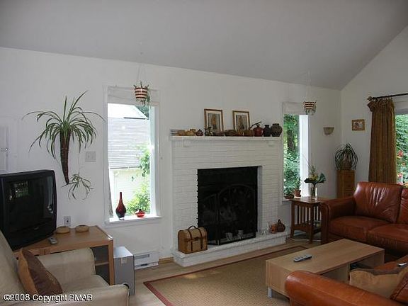 This charming Mt. Pocono home features hardwood flooring throughout, a spacious living room with a built-in fireplace, large windows, and a loft overlooking the living room. The kitchen is clean, bright, and functional, and the home offers excellent storage across all bedrooms.