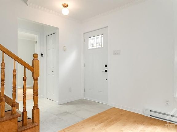 BEAUTIFUL 3 bedroom two-story detached home located on a vast & stunning treed lot in the family friendly neighborhood of Alfred. The main floor boasts maple hardwood flooring & tile throughout, crown molding, gorgeous dining room w/wainscoting & patio door, bright refinished kitchen + one bedroom. Upper level consists of 2 good sized bedrooms including primary bedroom with WIC & updated 4pc bathroom w/skylight. Lower level is complete with large finished rec room w/wood stove & large laundry room/storage area. This property is a must see! Freshly painted (2021), Roof (2021), Garage Door + auto opener (2021), Windows (approx. 2012). 24 hour irrevocable on all offers as per form 244.