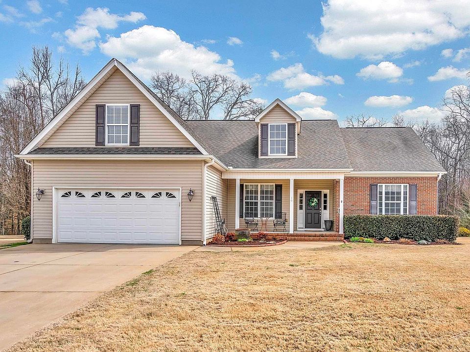 Looking for a well-maintained home on a half-acre lot? Look no further: 10 Chasie Lane is waiting for you! With three bedrooms and two baths on the main level and an upstairs bonus room, you'll have plenty of room to spread out. From the curved sidewalk that leads to the rocking chair front porch, you'll notice smart landscaping choices along the front of the home. Enter to find heavy crown moldings, beautiful wood floors, a tray ceiling in the flex area, and vaulted ceilings in the living room. Warm neutral wall colors create a cozy vibe. The open, circular floor plan in the main living area is perfect for welcoming guests or keeping an eye on things while cooking. Light streams in through the tall windows. The breakfast area overlooks the back yard, and the kitchen is ready for cooking with a gas range and dual sink. A spacious primary suite provides room for larger furniture or a sitting area and has dual closets. The primary bath has plenty of additional storage. The secondary bedrooms share a hall bath and are roomy and bright. The upstairs bonus room could meet any purpose, and the laundry room offers a utility sink. The back deck is the perfect place to unwind while overlooking the woods at the rear of the lot. A utility building with electricity sits in the backyard for additional storage and has a ramp for lawn equipment. With so much to offer only minutes from Greer, you don't want to miss your chance to see this one!