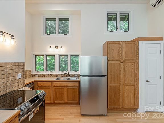 Picture the feeling of living in a Tree House, surrounded by a forest, birds, and winter mountain views. STR's allowed. This home can be whatever you want it to be: full time living, vacation rental, weekend getaway. Enter into the Big Open Cathedral Ceiling Living Room with open kitchen floor plan, also has an additional loft area to hide out in. Seller converted 1 bedroom home into 2 bedrooms with Den (which can be a third bedroom but due to window height restrictions is a den), all with closets and additional mini splits. Floor plan is attached. Walk in Area for storage and room to finish as well. Fenced in yard area for pets or kids to roam. Come sit on the porch and enjoy the peaceful sounds of nature! Seeing is believing...Easy Access to downtown Asheville and Town of Black Mountain.