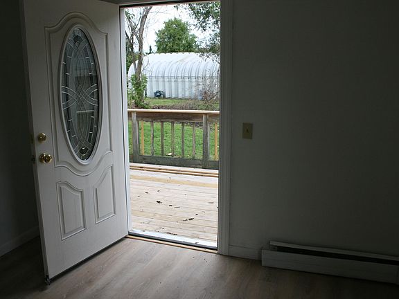 Completely refurbished interior, 4 bedrooms and 2 full baths. Many new windows and Doors, Granite countertops, gleaming hardwood floors, new carpeting, washer and dryer hookups in the basement. Gas heat, large deck off the back of the house, huge back yard that is private and secluded & partially fenced in, fire pit. Plenty of room to add a good size garden and Apple trees Renter responsible for all utilities