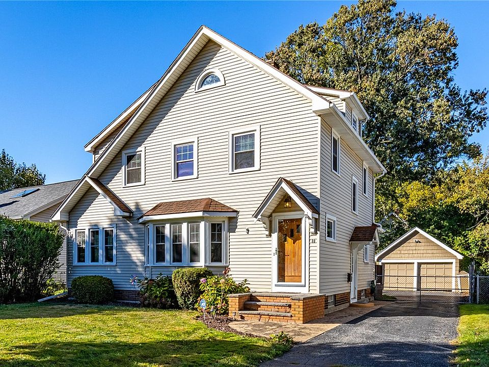 Welcome to the charming home at 10 Chimayo Road in Irondequoit. This beautiful 3-bedroom, 2-bathroom residence offers spacious living areas with gleaming hardwood floors, leaded glass doors, central air, and original natural wood craftsmanship throughout. Upon entering, you'll be greeted by a vestibule-like entryway that leads into the living room or upstairs to the second story. The living room features abundant natural light and a cozy gas fireplace, perfect for the season. Off the living room, you'll find a light-filled office/study or breakfast room, and a formal dining room, which seamlessly connects you to the back deck overlooking the large, fully fenced yard. The kitchen is equipped with granite countertops, ample cabinetry, and stainless steel appliances. Upstairs, the master bedroom boasts double closets, accompanied by two additional spacious bedrooms and a fully updated bathroom. The finished attic provides an ideal space for a study, movie room or workout area. Additional features include a multi-car driveway and a two-car detached garage. Don't miss your opportunity to own this charming and turnkey home! There are no delayed negotiations.