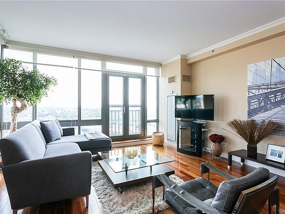 Rarely available high floor E-Line unit with breathtaking open views. Luxurious living at one of Westchester's most distinguished addresses. Enter a meticulously designed, light-flooded 2-bedroom, 2.5 bath apartment located on the 25th floor. With 1595 square feet of open contemporary living space, you will enjoy the quiet comfort and convenience in this elegant home. Enjoy panoramic views over the Hudson Valley from every window. Breathtaking views from the moment you enter through the foyer of this fabulous unit. Open concept living with a thoughtful layout and beautiful finishes, including Brazilian cherry hardwood floors and custom molding and finishes throughout. The apartment was designed with entertaining in mind, with a large living room with double door Juliette balcony, dining area and open kitchen directly off the foyer. Large kitchen with center island, cherry wood cabinetry, granite counter and top-of-the-line stainless-steel appliances. The spacious master suite has two large closets, one of which is a room sized walk-in closet and a marble private bath with double sinks, soaking tub, and separate shower stall. The second bedroom, which has an en suite bath, can also serve as an office, library, or den if desired. There is closets galore creating much storage and a laundry closet that houses the washer and dryer. 10 City Place is a luxurious condominium located in the heart of the city. Built in 2005, this exclusive building treats its residents to a wealth of white-glove services and amenities such as a private driveway, 24-hour doorman and concierge, fitness center, indoor pool and spa, children's playroom, residents lounge and an outdoor 9th floor recreation deck offering outdoor pool, tennis & basketball courts, picnic and barbecue grills, children's playground and golf putting green.