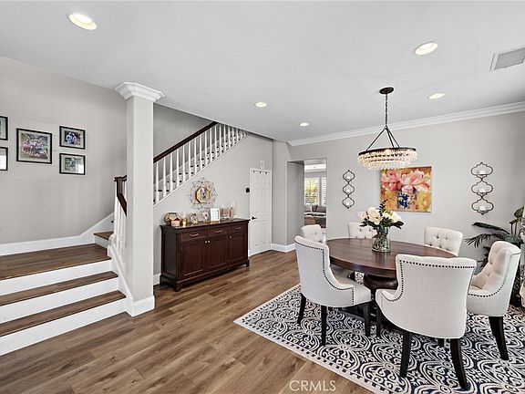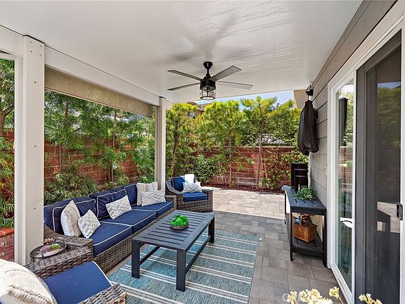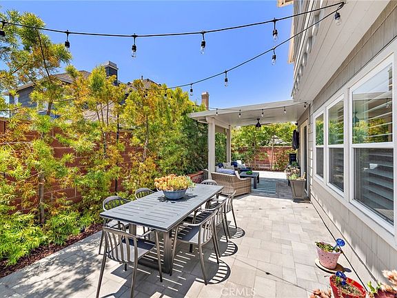 Nestled just across the street from the classic gazebo at Poets Park in Ladera Ranch, this turnkey Canopy Lane home offers everything you need to enjoy life to the fullest. A covered front porch and beautiful landscaping enrich curb appeal, and the backyard offers privacy, updated pavers and a covered patio. The functional interior plan presents ample room to entertain, grow and live stylishly in a two-story floorplan that extends approximately 2,933 square feet and is distinguished by five bedrooms, a bonus room, separate office and two- and one-half baths. One bedroom is located on the first floor ( currently configured as a Movie Theatre room), and the second-level primary suite features a luxurious bath with walk-in closet, two sinks, a sit-down vanity, soaking tub and separate shower. Formal areas enhance entertaining with a park-view living room and a spacious dining room, while the family room showcases a custom built-in entertainment center and a traditional brick fireplace with white wood mantle all adjacent to a larger bonus room. Opening to the family room, the home’s remodeled kitchen is upgraded with quartz countertops, a full tile backsplash, white cabinetry with large pantry and glass uppers, a nook that opens to the backyard, and stainless steel appliances including a KitchenAid six-burner cooktop. Featuring an attached two-car garage, this elegant residence is appointed with custom crown molding, plantation shutters, new woodgrain luxury vinyl plank flooring, new hvac, pre-paid Solar lease and upgraded lighting fixtures. The sought-after parkside location is also close to a skate park, aquatic park, trails, top-rated schools (walk to Oso Grande Elementary or Ladera Middle School in minutes) and abundant shopping and dining opportunities, all within Ladera Ranch.