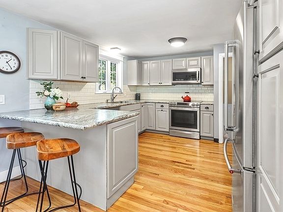 This multi level home is situated on a corner lot in the highly sought after Liberty Pole neighborhood. First floor offers generous sized living room w/ fireplace, eat-in kitchen & slider leading out to a screened porch. There are 3 bedrooms & recently renovated full bathroom on the second level. The lower level lends itself to a family room, half bath w/ laundry leading into the basement offering plenty of storage space. Many upgrades including new windows, central A/C & water filtration system. Just a short walk to the South Elementary School, convenient to Derby Street Shoppes, Rt 3 and the commuter train. Unpack your bags and make this house your home!