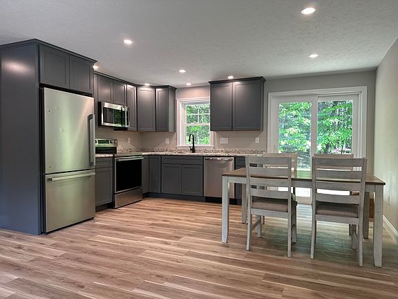 Open House Cancelled Property Under Contract.___Welcome to a professional renovation by J&J Millworks. You will be impressed by the details, such as the taller upper kitchen cabinets, adding a patio slider off the dining area, and expanding the decor possibilities by using LED lighting and laminate flooring, throughout. Plus, this home offers radiant floor heat, a 1 car garage, a sizable backyard as well as brand new windows, siding, kitchen and bath. There's a cute 'drop space' at the garage entrance with a matching custom bench, and this home is meticulously painted. Well and septic already inspected, boiler is serviced. Located only 4.2 miles from Gorham center and a quick drive to Saco this is a move in ready to love home. Brand new kitchen appliances included, call and set up a showing today.