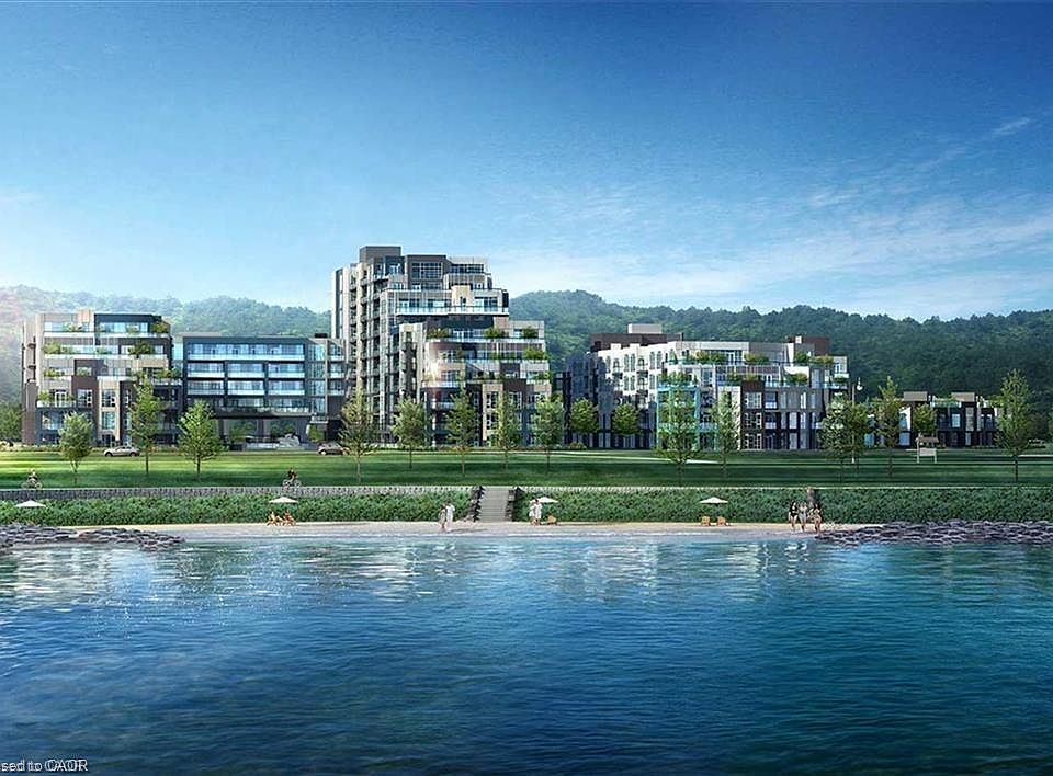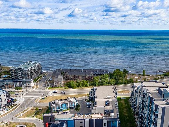 LUXURIOUS APARTMENT CONDO LOCATED IN GRIMSBY ON THE LAKE!! Spacious corner unit offering approximately 1500 sqft with floor to ceiling, wall to wall windows, providing spectacular views of the lake and Toronto skyline. Modern open concept design with spacious foyer, hardwood floors, crown mouldings and recessed lighting. 3 underground parking spaces. Gourmet kitchen, large island, abundant cabinetry, granite counters and stainless-steel appliances. Enjoy the two separate balconies plus the expansive terrace offering a great space for relaxation and taking in the Lake views. The elegant primary bedroom suite has 2 walk-in closets, luxurious ensuite bath with jetted tub and glass doors to the terrace. Second bedroom with full ensuite bath, walk-in closet. OTHER FEATURES INCLUDE: Newer secured building, 2.5 baths with granite counters, in-suite laundry with washer & dryer, central air, custom window treatments, hardwood floors, wine cooler, kitchen appliances. Condo amenities include party room, roof top lounge, workout facilities, meeting room, car wash station, private locker, ample visitor parking. Quality finishes throughout this unit. Steps to waterfront trail, beach, fine dining and shopping and less than 10 minutes to wineries. Carefree living at its best awaits you. A must see!