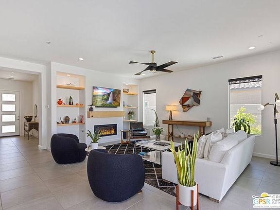 Multiple price reductions in place - Here is the popular SANCTUARY model with the coveted movable wall feature. Third bedroom was converted to separate home office. Nestled within a sublime desert landscape, the views and light and modern vibe combine to create a one of a kind look and feel. This spacious home is highly upgraded Including a living room fireplace, waterfall quartz kitchen island. The seller added a custom pool and spa with dual waterfall features and a spacious backyard, this home is a must see. Solar lease is $102 monthly. This property is located on a quiet, and pristine cut-de sac location and will transport you to a luxurious yet elegant desert oasis environment. Extra large backyard with plenty of space for outdoor entertaining. Seller motivated .