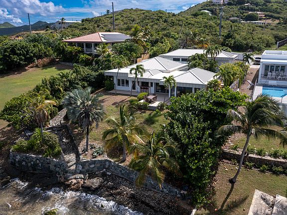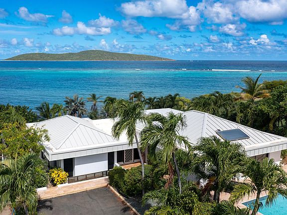Spectacular beachfront living awaits as you enter through the private gates of this stunning home on more than 80 feet of secluded beach on St. Croix's East End. With a total of three bedrooms and now three full bathrooms plus a half bathroom, this property showcases panoramic views with Buck Island as the centerpiece and is sure to delight even the most discerning buyers. Fresh exterior paint enhances the home's curb appeal, and the main house sits approximately 20 feet above sea level, capturing steady breezes and postcard-worthy vistas. The expansive patio and pass-through kitchen window bar create true alfresco living, ideal for effortless entertaining. POTENTIAL OWNER CARRY FINANCING AND, OF COURSE, BANK FINANCING IS AVAILABLE FOR THIS PROPERTY. The main house features two bedrooms, two full and one half bathroom, an open floor plan with soaring cathedral ceilings, and a gourmet kitchen with granite countertops and custom cabinetry. The home is equipped with two solar hot water heaters that provide energy savings and added efficiency. Family and guests will appreciate the private one bedroom, one bathroom guest house complete with a cozy living room and kitchenette.