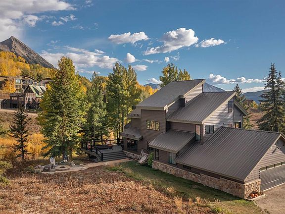 10 Daisy Circle is a gem of a house, situated on an elevated 1+ acre site that enjoys panoramic views of the surrounding mountains and ski area. A classic Mt. Crested Butte ski home with over 3,000 sq. ft of living space, including dual living areas with a floor to ceiling double-sided, moss rock fireplace, 5 bedrooms, 5 baths and a bonus loft with bunk beds. The current owner has recently updated many features in the home including windows, doors, kitchen appliances and countertops, carpeting, exterior decking including hot tub and rock fire pit, as well as, masonry rock work around the base of the home. In addition, 4 of the 5 baths have been completely redone and have in floor heat. The large primary bedroom has a spacious walk-in closet with built-ins, gorgeous double vanity bathroom with a soaking tub and its own private balcony looking out over the mountains. On this same level, there are 2 additional bedrooms/baths, one as an ensuite with a steam shower! Climb up the ladder and you will be surprised with the spacious loft that has a bunk bed, plus 3 single beds. On the main level, there is another ensuite bedroom with a large Japanese soaking tub plus an additional bedroom that is currently being used as an office. 10 Daisy offers a great outdoor living space where you can soak up the breathtaking views while relaxing in the hot tub or sitting around the fire pit. What are you waiting for? Make this special home yours!