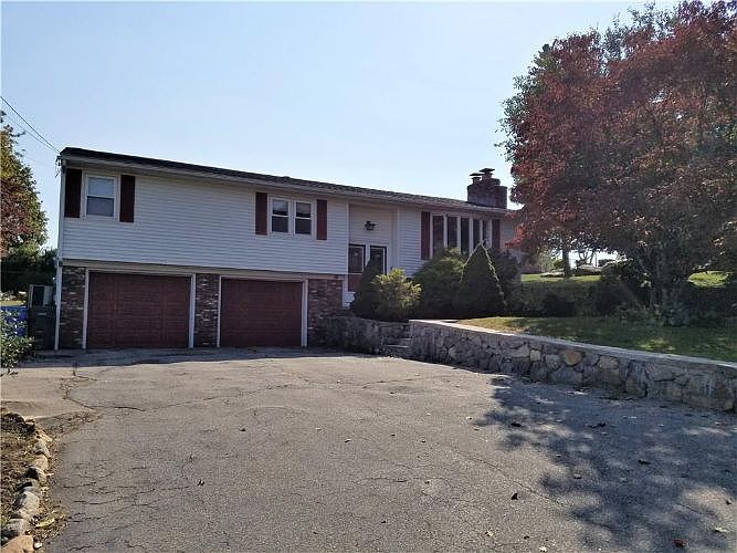 Big and beautiful western Cranston home with plenty of room both inside and out. Well cared for property features 3 nicely sized bedrooms. 2 and 1 2 baths. Spacious living room and dining area. Updated kitchen. 2 fireplaces. New ceramic flooring. One year old roof. Gas heat. Vinyl sided. Nice patio overlooking a water garden. Central air. Two car integrated garage. Gorgeous 19000 sf corner lot. Close to schools, stores, highway. Finished lower level with large family room, storage area, walk in cedar closet and full bath. Nothing to do but move in and enjoy this home.