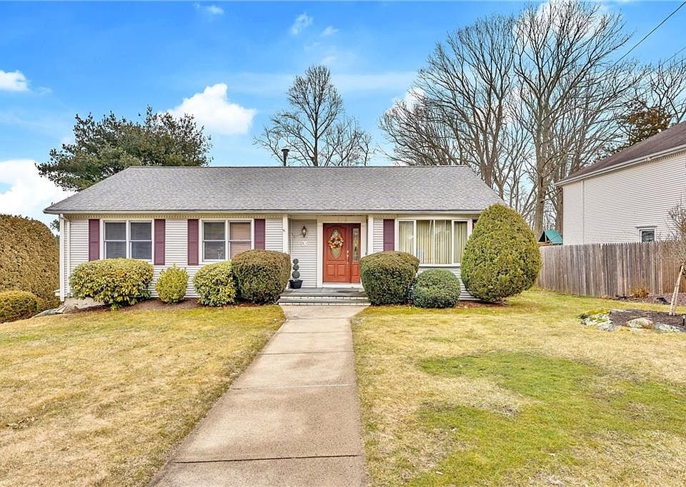 10 David Drive is a single family Ranch home in the Stone Hill neighborhood of Western Cranston. Built in 1987, this 3 bedroom and 2 bath home has 1300 sqft on the main level and another 200 sqft of finished space in the lower level. The main living space--living, dining and kitchen--offer an open floorplan and vaulted ceilings. Primary suite, central AC, sliders to back deck and sprinkler system are all a part of the package. And the home sits on a beautifully landscaped 12,000 sqft lot with a curved driveway to an integral garage. Some minor cosmetic updates will make this home shine.