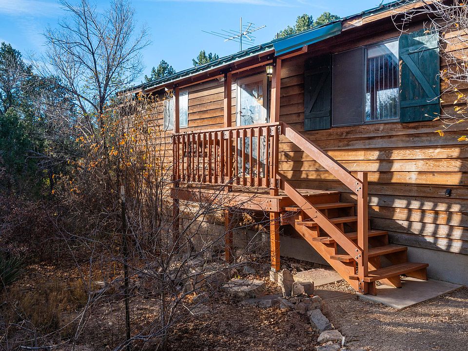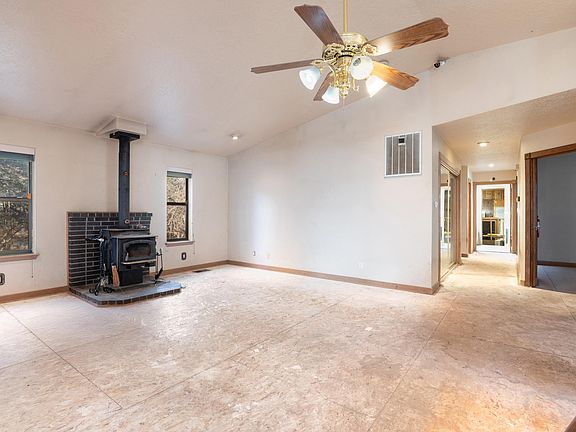 This peaceful 3-bedroom, 2-bath retreat offers endless potential to create your ideal getaway. Surrounded by pines and oak, the property provides space, privacy, and the tranquility of nature. The home is ready for your personal touch, with essential appliances already included, and an oversized garage with high ceilings and plenty of space for storage and tinkering. Miles of scenic trails just minutes away make it the perfect canvas for your imagination. The primary suite features a soaking tub for relaxing after a day of exploring. With a bit of care and creativity, this as-is property can be transformed into a truly special mountain retreat.