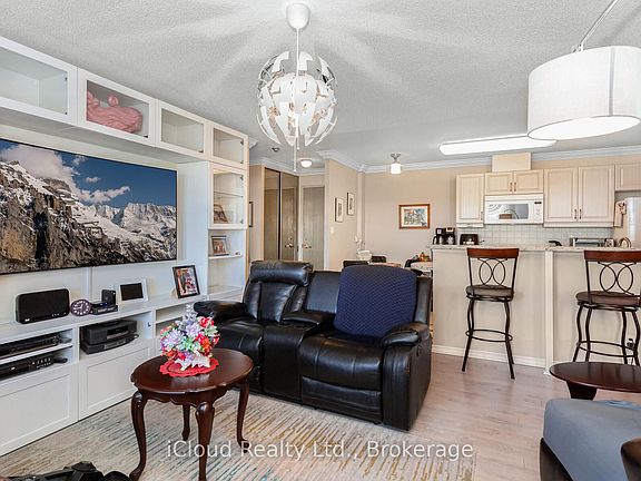 Welcome to this 2+1 bedroom, 2 bathroom well maintained unit at 10 Dayspring Circle that overlooks the Claireville Conservation! With almost 1300 sq ft of living space, this open-concept layout offers a bright and airy floor plan. The eat-in kitchen has granite countertops, updated cupboards, pantry and overlooks the living/dining room. The combined living/dining room features a custom built-in entertainment unit, large windows, perfect for allowing lots of light and a walk-out to the balcony that has unobstructed breathtaking Southside views of the ravine! The generously sized primary bedroom has an upgraded 4 piece ensuite, a large window allowing in lots of light, double closets and an additional custom closet. 2nd bedroom is very well sized with a large closet, large window and the separate den area has a custom built-in unit, perfect for a home office, or extra in-unit storage. Unit is South facing and rooms have a great view of the ravine! Other features of the unit include ensuite laundry, upgraded hardwood flooring (no carpet), crown moulding, 2 owned underground parking spots, storage locker and updated window shutters. Walking trails are right outside your front door, and it is close to shopping, dining, parks, transit and the highway. Tons of included on-site amenities such as a library, A/V room, crafts room, game room and billiards room. There's even a private party room with stage and separate kitchen that is perfect for hosting events and also guest suites! (added cost). Building is very quiet, well maintained with predominantly adult residents and KITEC piping/plumbing was replaced in 2021 (receipt available). Do not miss out on this incredible opportunity that is perfect for commuters, or for those looking to downsize!