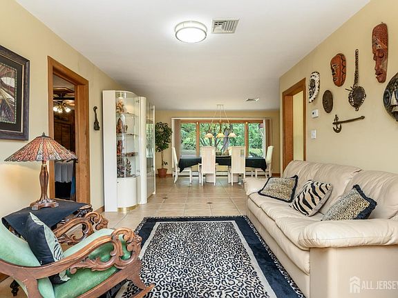 Dream Homes DO Exist! Sprawling 4 Bed 2.5 Bath Ranch on a private, picturesque 2.3 acre property with Master Suite, Solarium, 1 Car Garage, and Resort-like Backyard in highly sought after Holmdel is sure to impress! This Beautiful home is meticulously maintained inside and out with curb appeal and over 3000 sq feet of finished, accessible one floor living, just pack your bags and move right in! Tiled foyer entry welcomes you in to find a spacious and sophisticated interior with generous room sizes, 3 cozy fireplaces, and plenty of natural light all through. Elegant formal dining room features a large picture window with peaceful views, fireplace, and flows right into the lovely living room. Large eat-in-kitchen offers sleek SS appliances, recessed lighting, delightful breakfast bar, tiled flooring, and sunsoaked dining area with serene views and slider to the deck for easy al fresco dining. French doors off of the kitchen will lead you to a versatile bonus room, perfect as a music rm, home office, etc. Impressive great room is the heart of the home, adorned with vaulted ceilings with exposed beams that truly open up the space, soaring skylights, floor to ceiling fireplace, deck access, and entry to the blissful solarium. All 4 bedrooms are generous in size with ample closet storage, inc the Master Suite with its own fireplace and NEW upgraded full private ensuite bath with luxurious soaking tub and stall shower. Convenient 1/2 bath, 2nd full bath holding a jacuzzi tub w/steam feature & laundry room rounds out the main level of this gem. Partial finished basement with exterior access offers ample storage; finish it off for even more living space. Huge, plush backyard is an entertainer's paradise, boasting a beautiful 1700 sq. ft. deck with canopy, a 21x46 3200 gallon in-ground swimming pool, and a 15x45 enclosed vegetable garden, great for green thumb enthusiasts, all backing to private wooded views. Extra large driveway and 1 car garage with above storage offers plenty of guest parking. All in a highly desirable neighborhood, 1/2 a mile from iconic Bell Works, a destination hub for entertainment, dining, fitness, activities for all ages, farmers market, retail stores, library, golf range & more. Also convenient to Holmdel Park, renowned Holmdel Twp schools, farms, shopping, & easy access to major roads and more. Don't miss out! Truly, a Move-in-Ready MUST SEE!! **Showings Begin Saturday, 10/11/2025