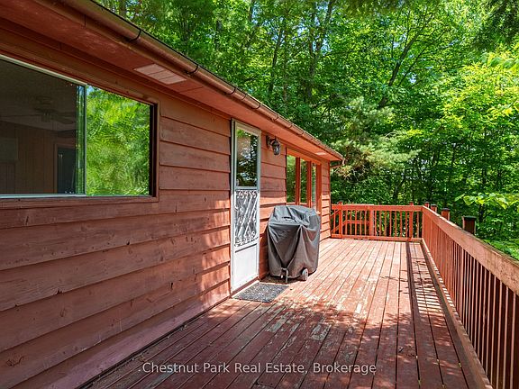Remember going to the cottage as a kid? 10 - 1054 Deewood Drive encompasses all the nostalgia of summers in Muskoka gone by. Down the shared laneway is your grandparent's cottage nestled among the trees. You jump out, tear down the wooden steps, drop everything to get into your swimsuit and cannon ball right off the dock without a second thought. This three bedroom, one bathroom open concept cottage is just the right size for your family to grow up at. Walk out to your expansive wrap around deck facing Three Mile Lake and listen as the boats go by. The sounds of summer! There is a bunkie down by the water for dry storage or sleeping teenagers. Fire pit and dock await by the hard packed, sandy, waters edge. Up the stairs is another shed and then garage at the top of the driveway. Across the lane way is another 1/2 acre parcel with 109' of road frontage on Deewood Dr. that is being sold together with this waterfront cottage. Build your dream cottage and private driveway there and keep this cottage as a bonus space for guests! See survey image for Parts 43 & 11. Buyer to put a septic system in. This cottage has a composting toilet and grey water system.