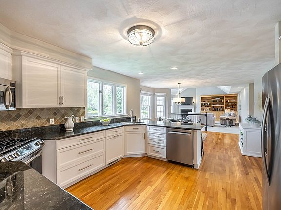 Classic Andover Colonial in sought after neighborhood! This turnkey property features a spacious eat in kitchen w/ granite counters, SS appliances, breakfast bar for causal meals, hardwood floors & pantry. Adjacent to the kitchen is the family rm w/ gas fireplace, cathedral ceiling, skylights & access to rear deck overlooking a well-manicured, private yard. The formal living/dining rms, home office w/ built-ins and 2 story foyer complete the first floor, all with hardwood floors. Upstairs you'll find 4 spacious bdrms w/ ample closet space, 2 full updated baths plus laundry. The principal suite is nicely sized and includes luxury bath with dual sinks, whirlpool tub, glass shower and tile floors. The finished LL includes play rm/game rm area, an exercise rm plus plenty of storage. Outside you'll find a newer deck, patio, heated in-ground pool w/ jacuzzi, a basketball court & storage shed. Excellent opportunity to own this gorgeous home in the desirable Sanborn/Wood Hill School district!
