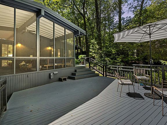 A rare opportunity in Lexington's desirable Turning Mill neighborhood, this mid-century modern home seamlessly blends indoor and outdoor living. The open floor plan is a dream for entertaining, with cathedral ceilings and striking wood beams soaring over the living room, dining room, and a built-in bar area. The main bedroom suite is a private retreat, featuring a marble shower with a frameless glass door and a spacious walk-in closet. Downstairs, the lower level offers a cozy spot for movie nights and a secluded office space. Outside, a screened-in porch leads to a multi-level deck overlooking a beautifully landscaped, serene garden. With a 24 KW whole-house generator and two sheds providing ample storage, this home offers a perfect blend of style, comfort, and functionality, all nestled in a peaceful setting. Offer Deadline: Monday at 12:00.