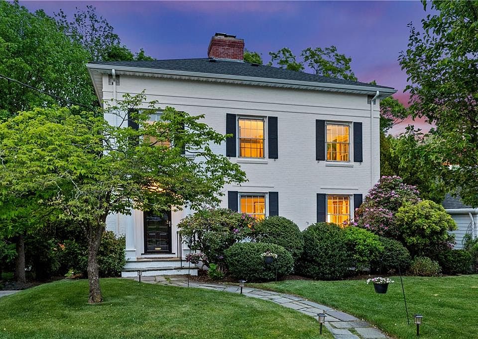 Introducing 10 Dryden Avenue. Timeless and elegant with a twist - this Oak Hill Georgian Revival makes a bold statement. Located steps from Blackstone Blvd and the East Side, the vila-inspired white facade captures the texture of brick while adding a clean, modern appeal. Designed to entertain - the first level is well connected and versatile. To the right of the entry foyer is a double living room with marble fireplace, formal dining and a discreet powder room for guests. The adjoining sunroom opens to an expansive flagstone terrace; stretching the entire width of the home, bordered by large east-facing windows; it offers sweeping views and a perfect spot for al-fresco dining. The kitchen is sleek and stylish with cool stone floors, dark cabinets and contrasting white marble countertops. Head upstairs to find (2) cheery bedrooms, a shared bath and the spacious owner’s suite with ample closet space, dressing area and another private full bath. Renovated lower level adds additional living space with a 4th bedroom and 3rd full bath. With walk out access to courtyard and driveway from side-door or integral two car garage makes this a perfect space for in-law or guest suite. Step outside and embrace those old-world Europe vibes the incredible courtyard. Tucked behind the gently sloped lot, surrounded by magnificent stonework, walls of climbing ivory and flowering wisteria draped from the terrace above - it's a secluded sanctuary sure to impress.