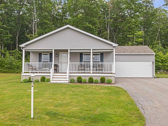Welcome to Mountain View Estates, where comfort meets convenience in this charming 55+ community. This single-level living gem offers spacious accommodations with 3 bedrooms and 2 baths. This open concept layout provides a seamless flow, featuring a large kitchen complete with a breakfast bar, tiled backsplash, plenty of cabinet and countertop space, adjacent dining room and oversize living room. Easy access to the full-length front porch with retractable shades, offers the perfect spot for relaxation, birdwatching or to simply enjoy the view. The back provides more privacy to enjoy the upcoming sunny days, perfect location for a cookout or to socializing with friends and family. At the end of the day, retreat to the primary suite with a spacious bedroom, walk-in closet and ¾ bath with an easy step walk-in shower, double sinks and linen closet. Two generous size additional bedrooms and a full bath. First floor laundry room. Attached one car garage which provides, ample storage space and/or workshop space that is fully insulated , has heat and AC. Some updates include a whole house generator, new mini split and newer asphalt shingles. Community perks include a club house, mail house, walking trails, maintained roads, snow removal, trash and landscaping , making this property a sought-after haven. Don’t miss this opportunity!