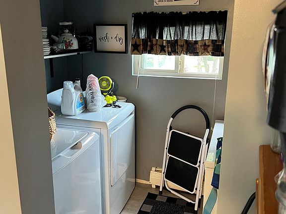 Dining roomWasher and dryerCovered front porchLarge double lot yardMain floor laundryLaundry roomRear deck