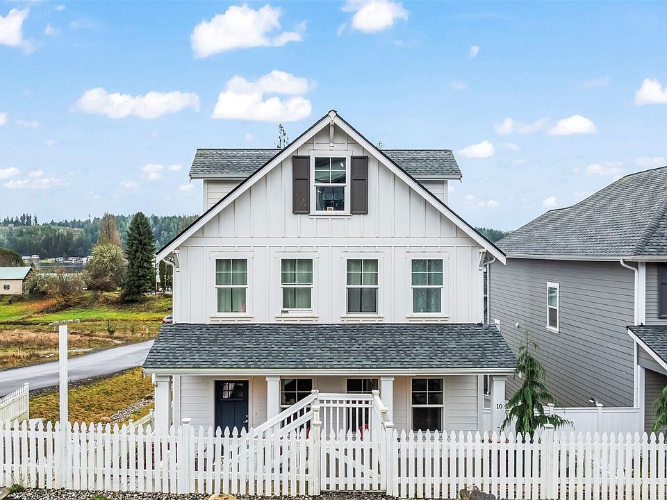 Welcome to The Cottages at North Bay & immerse yourself in the essence of coastal living starting with white picket fences lining the community streets. Newer Construction versatile living with windows around every corner, this 4 bedroom three story home features additional carriage house above spacious garage! Very versatile floor plan with enough bedroom/ office/ bonus room options to meet the needs of anyone. All of this combined with timeless and tasteful finishes all set in the quaint waterfront town of Allyn, just minutes from Lakeland Village Golf Club. A true beachy vibe & quintessential location featuring nearby boat launch and park/pier. Photos are of a home with the same floorplan right down the street.