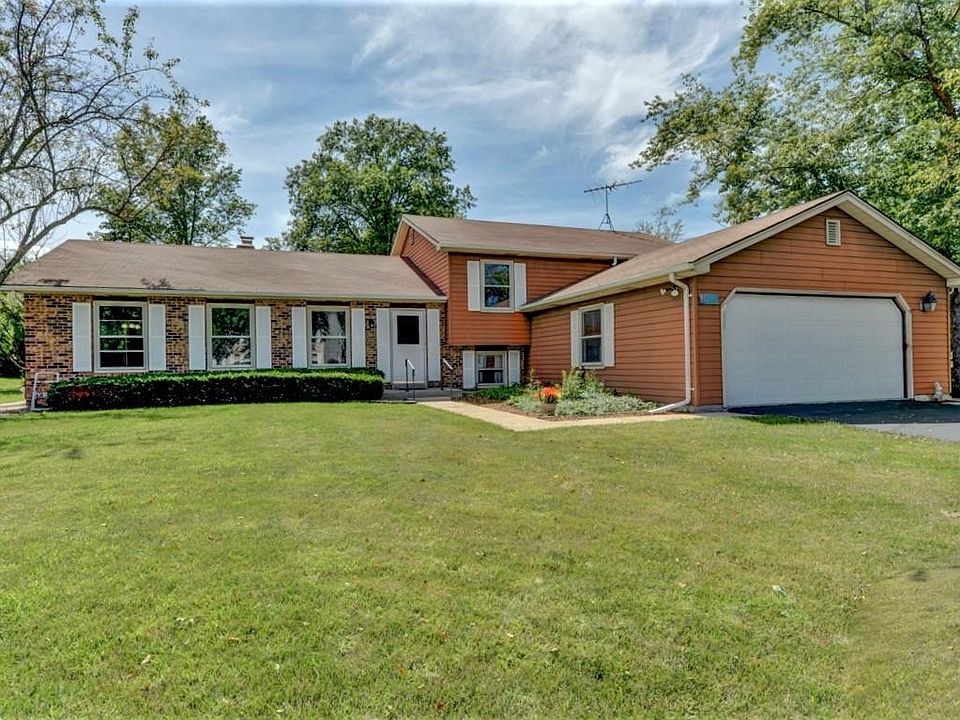 Spacious Split level on Cul De Sac and vast environmentally protected wooded area behind home. Awesome back yard with maintenance free fence, 40 x 18 In ground pool with diving board(9.5 ft deep at diving area), side yard and three season room off kitchen. Great yard for outdoor entertainment and family use. Home is much larger on the inside than you think! Main level features spacious foyer, Formal Living Room, Formal Dining, Kitchen with additional center island(with storage). Separate Family Room with Fireplace(gas starter wood burning). Upstairs with 3 bedrooms. Main Bedroom has its own private bath and plenty of closest space(includes walk in). 2nd large bedroom with walk in closet. 3rd bedroom with with nook and shelving.2nd bath upstairs has spacious storage. Lower level a couple steps down from foyer is huge with 4th bedroom/office, 3rd bath combined with laundry and 21 x 14 1/2 level family room with some built ins,movable island and access to attached 2.5 car garage. Sun room is accessible off kitchen (floor,carpet &screening replaced) is very spacious overlooking pool and yard. Updated furnace(5 yrs), central air (2 yrs)and hot water tank(new). New carpeting and updated flooring throughout. Peg oak flooring in Main Family is gorgeous! All ceiling fans remain.Kitchen has granite counters and custom Birch cabinetry. Also extra insulation added to kitchen wall when remodeled. Pool liner, heater and filter replaced over past 5/6 years. Pool opened and closed professionally each year. Interior of home is super clean as can be and quick closing and immediate possession ! Attached 2.5 car garage with 2 openers. Exterior of home is brick and remaining is maintenance free. Softener removed because it was a rental. Cost was around $30 per month. Flooring of Sun Room recently replaced with green board.Short distance to major expressway and metra train about 6 miles away. Pool was operating in 2019 but owner did not open in 2020. Pull down stairs and additional storage in garage Must see back yard and interior to appreciate PRIDE OF OWNERSHIP!